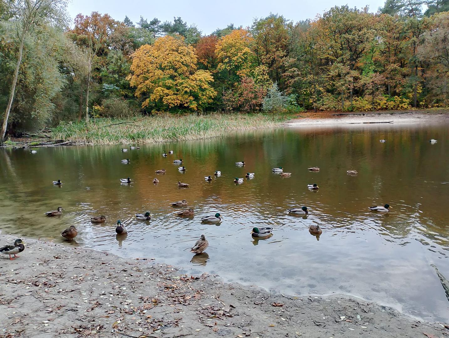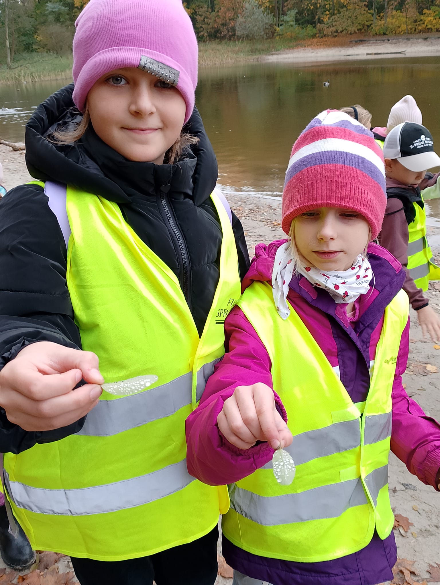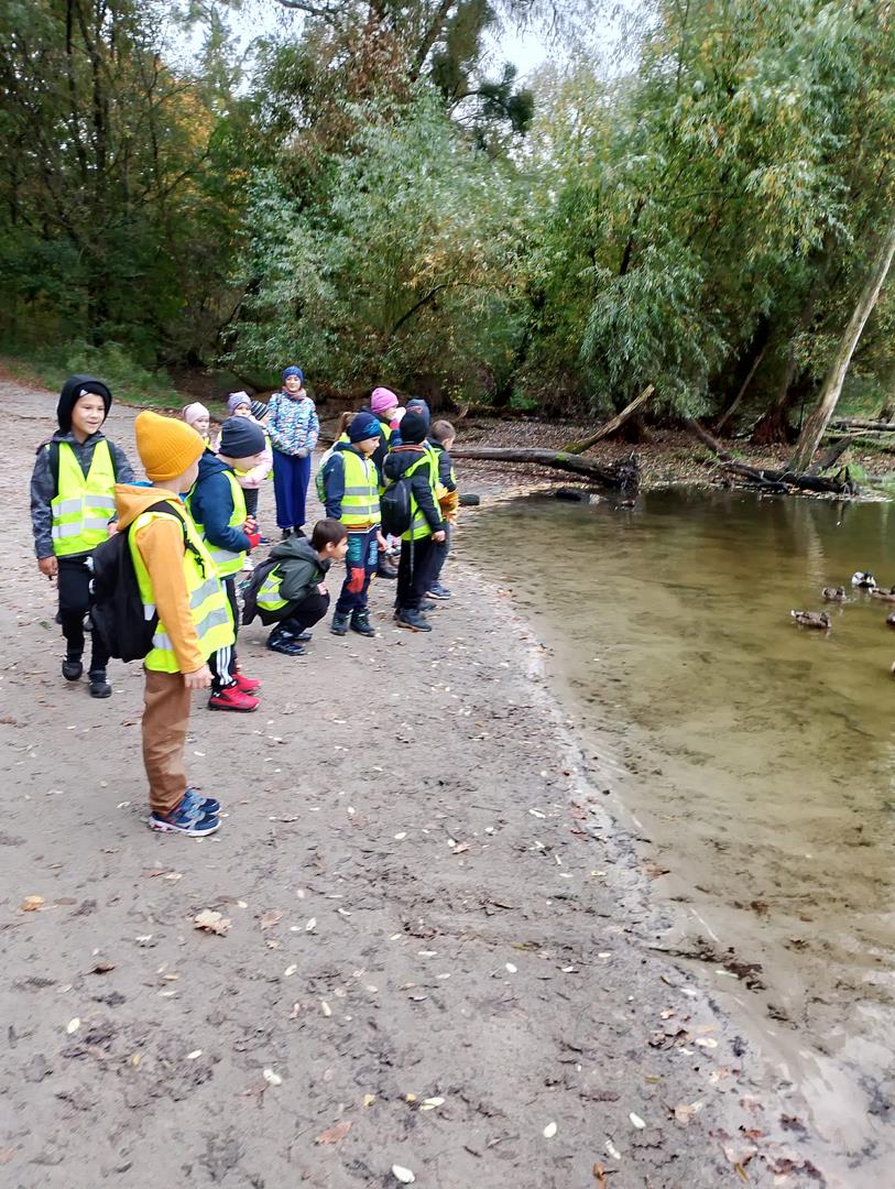 od najjaśniejszej do najciemniejszej, tworzyli różnobarwny bukiety. Dzieci z dużym zainteresowaniem obserwowały kaczki pływające po jeziorze, słuchały odgłosów lasu, śpiewu ptaków.