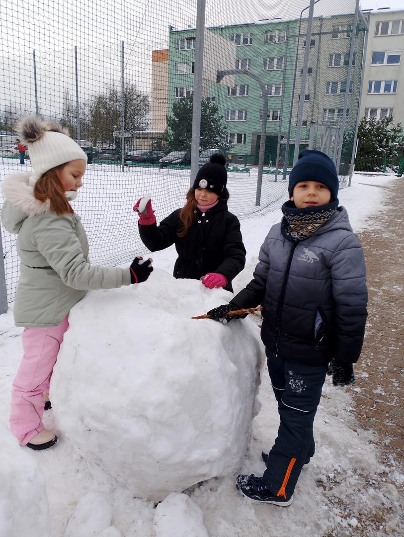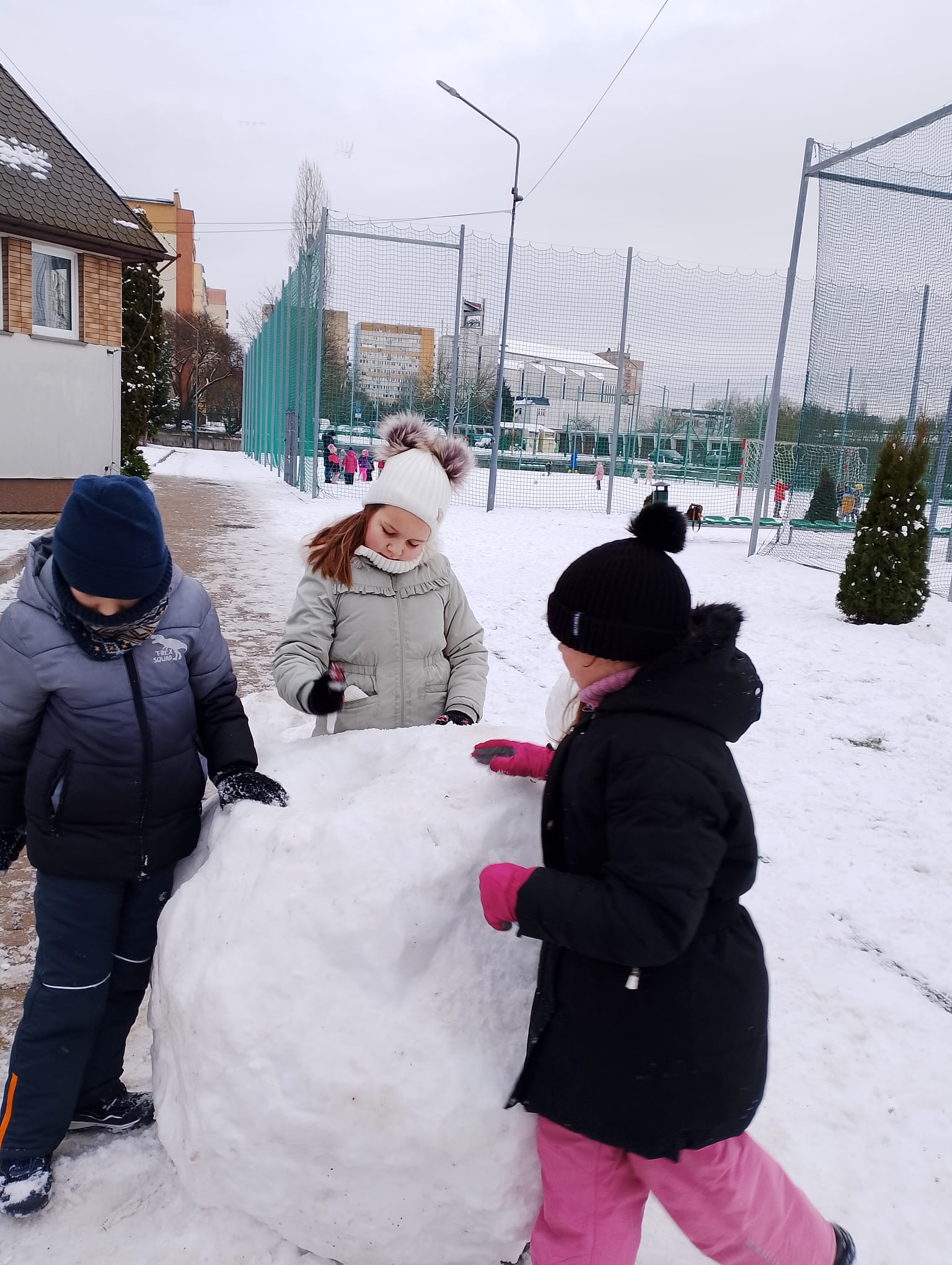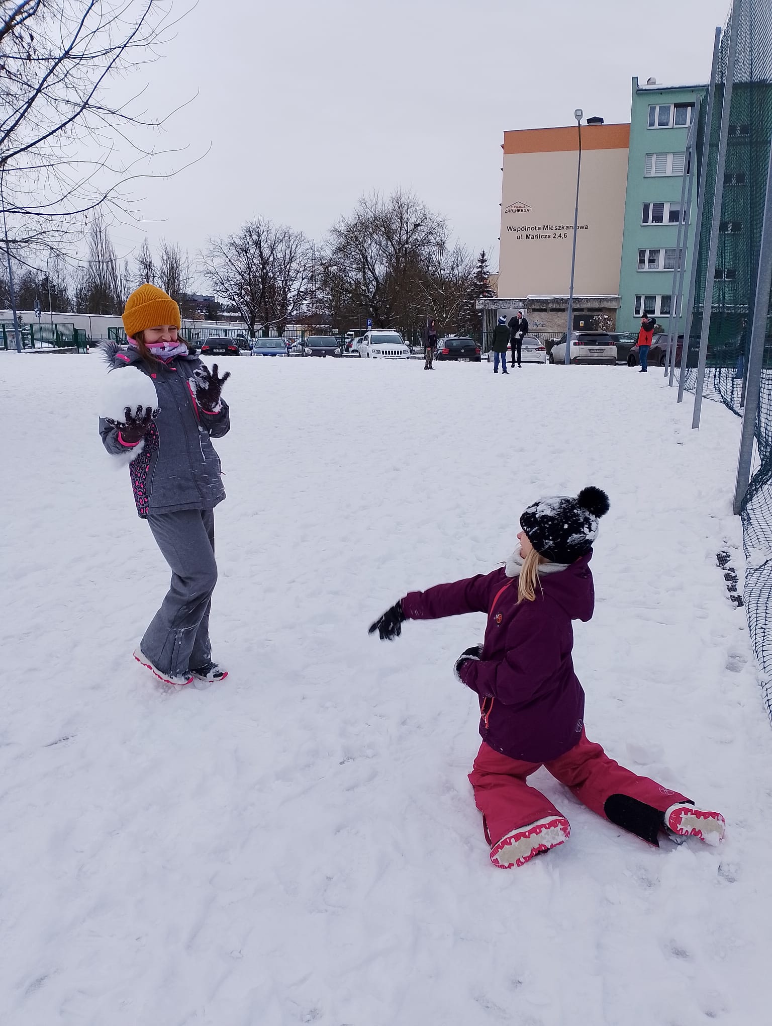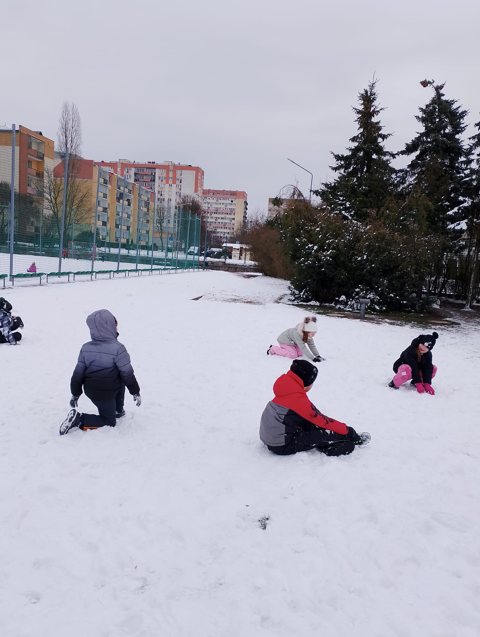 Wykorzystując słoneczną, zimową aurę, korzystając z uroków zimy, uczniowie kl. 2c ubrani w ciepłe kombinezony postanowili aktywnie spędzić czas na świeżym powietrzu. Po przypomnieniu zasady bezpiecznej zabawy na śniegu i lodzie, na zaśnieżonym boisku szkolnym dzieci oddały się zimowemu szaleństwu robiąc "orzełki" na śniegu, lepiąc śnieżne budowle, rzucając śnieżkami. Uśmiechy na twarzy i radosne okrzyki towarzyszyły dziewczynkom i chłopcom przez cały czas pobytu na świeżym powietrzu. Z nadzieją, że śnieg zbyt szybko się nie roztopi, dzieci wróciły na zajęcia do klasy.
