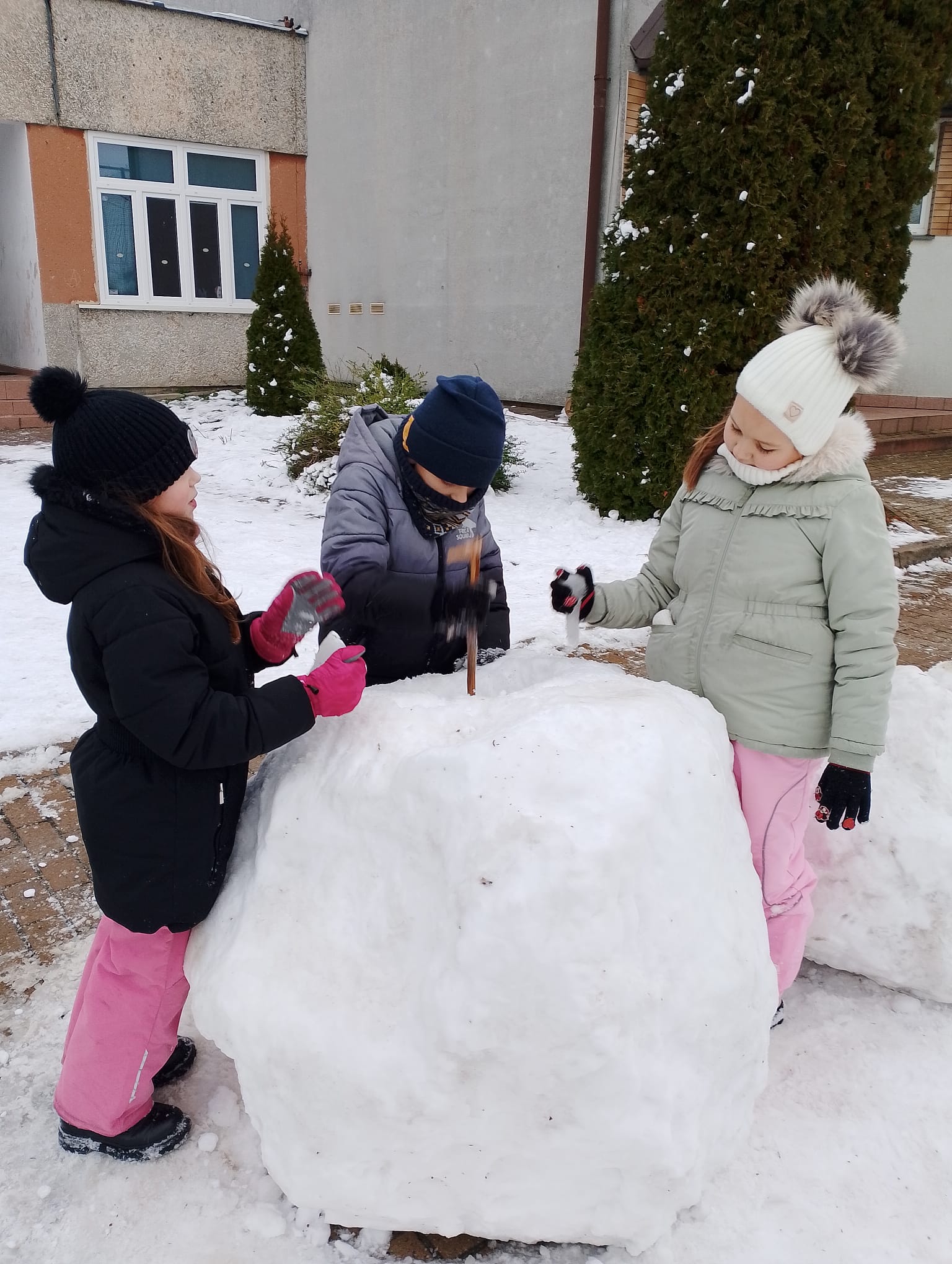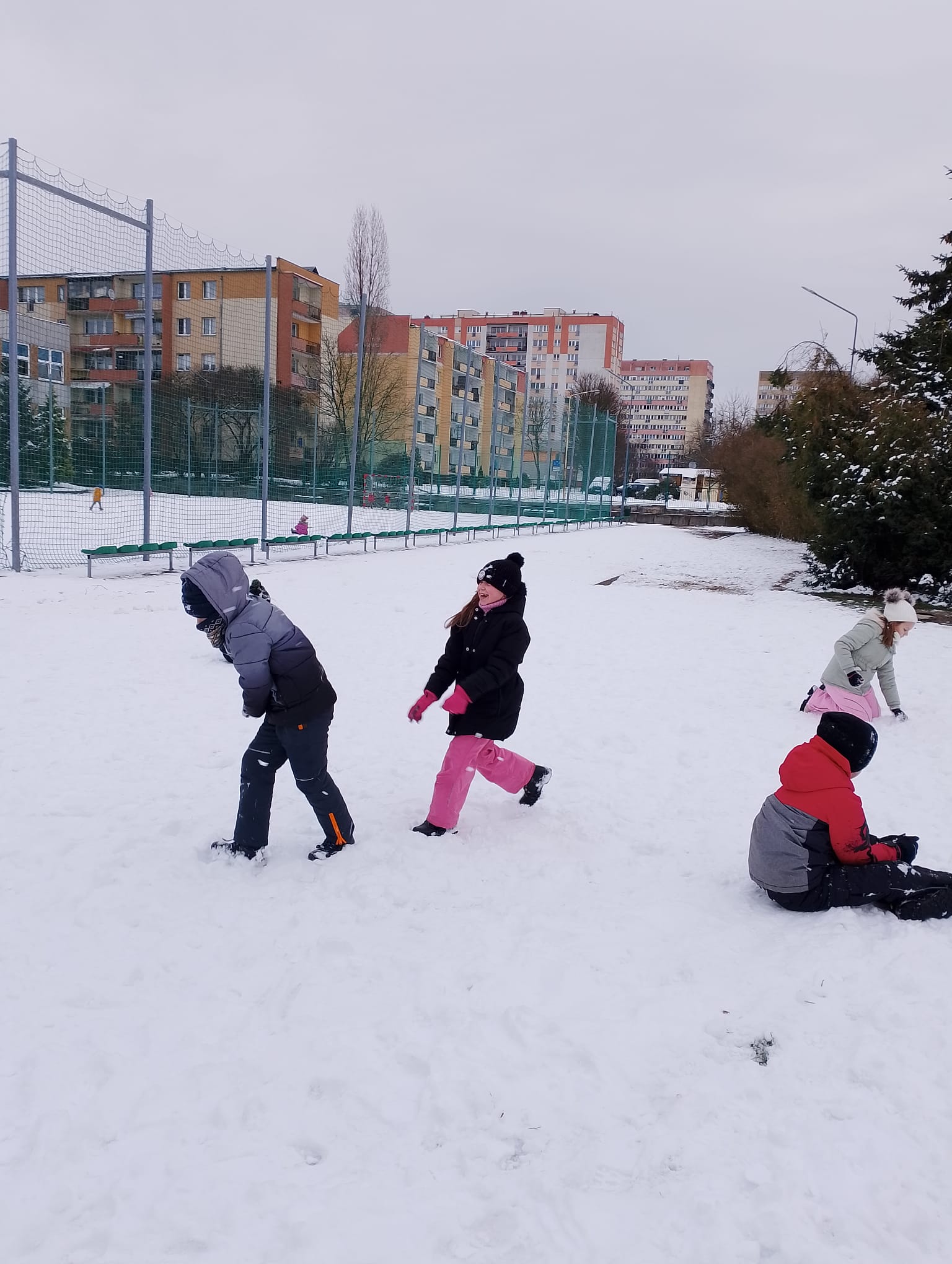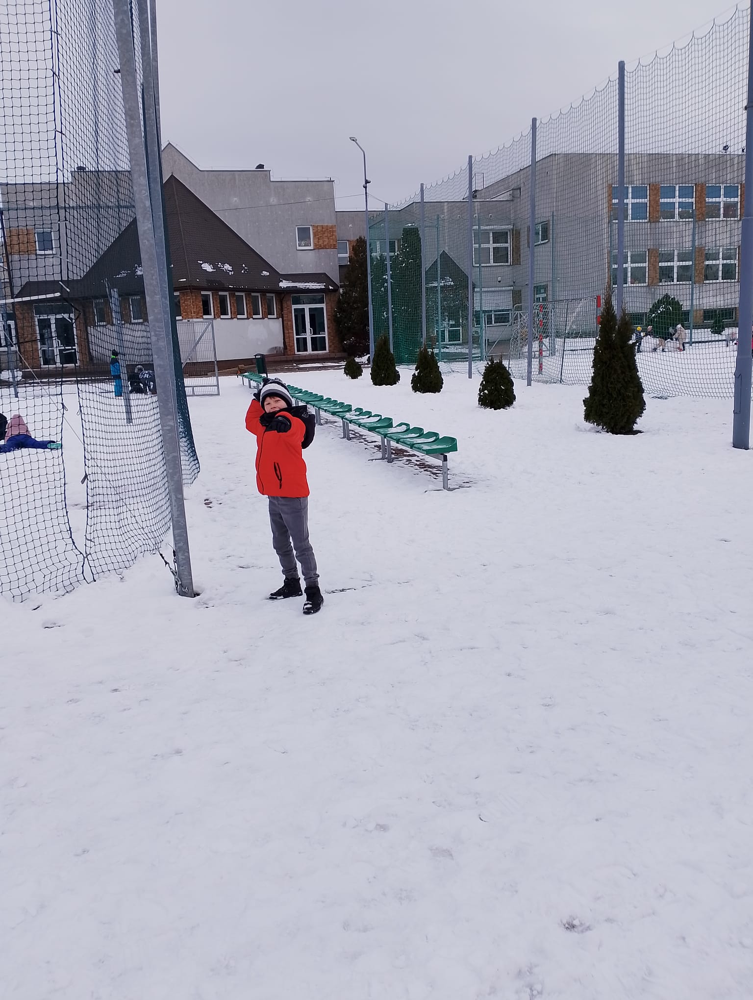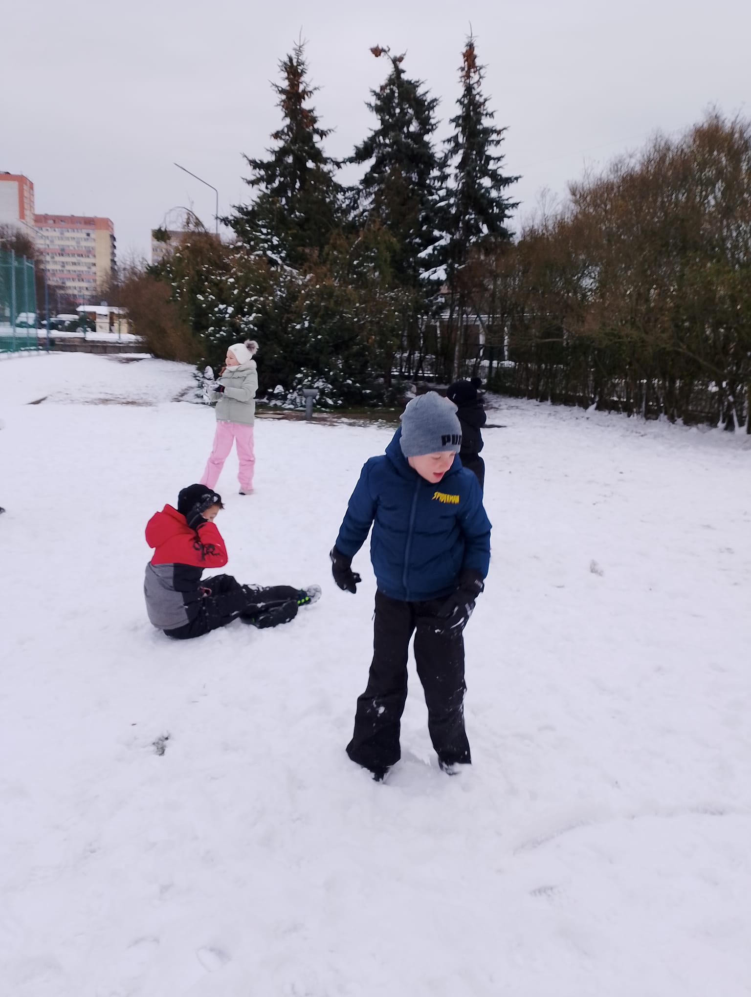 Wykorzystując słoneczną, zimową aurę, korzystając z uroków zimy, uczniowie kl. 2c ubrani w ciepłe kombinezony postanowili aktywnie spędzić czas na świeżym powietrzu. Po przypomnieniu zasady bezpiecznej zabawy na śniegu i lodzie, na zaśnieżonym boisku szkolnym dzieci oddały się zimowemu szaleństwu robiąc "orzełki" na śniegu, lepiąc śnieżne budowle, rzucając śnieżkami. Uśmiechy na twarzy i radosne okrzyki towarzyszyły dziewczynkom i chłopcom przez cały czas pobytu na świeżym powietrzu. Z nadzieją, że śnieg zbyt szybko się nie roztopi, dzieci wróciły na zajęcia do klasy.