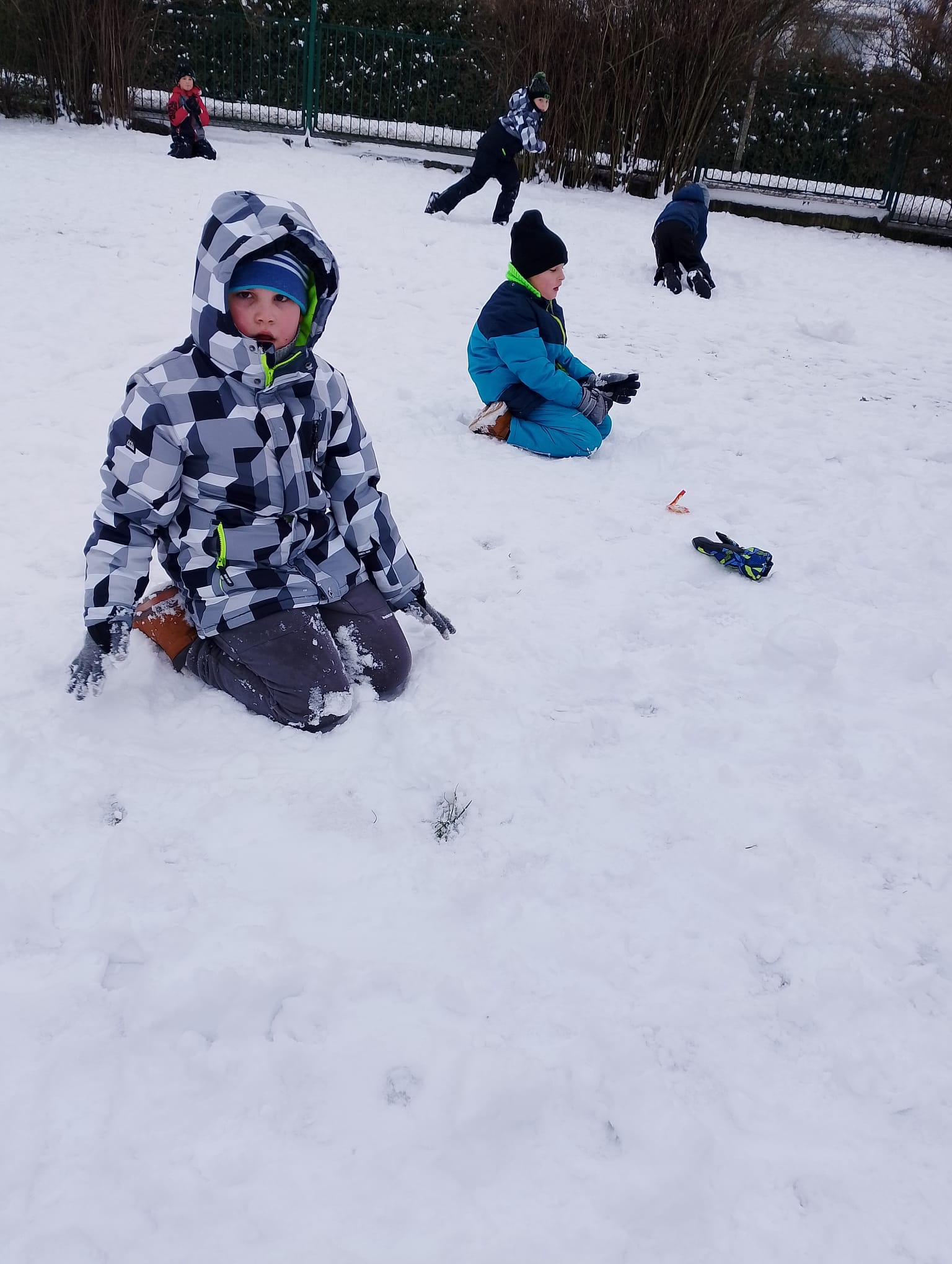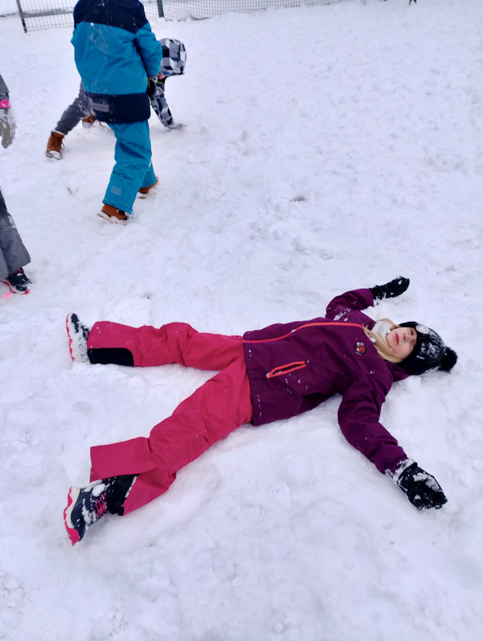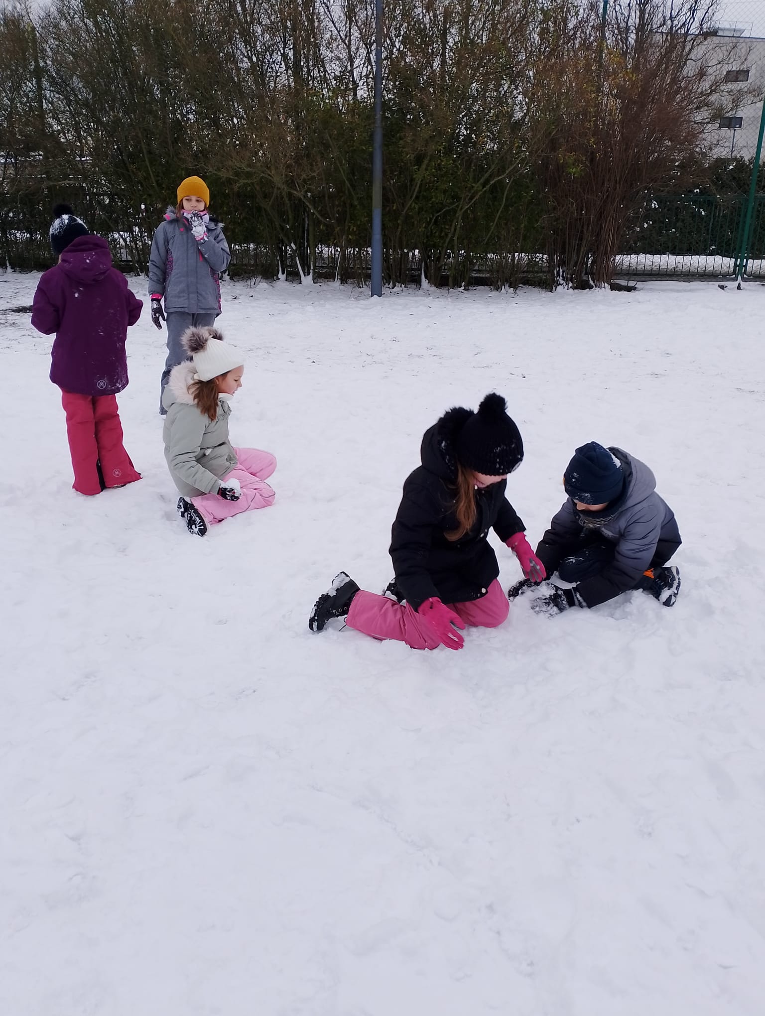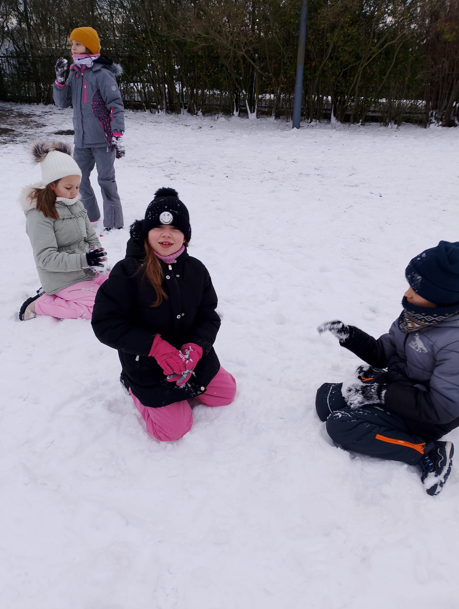 Wykorzystując słoneczną, zimową aurę, korzystając z uroków zimy, uczniowie kl. 2c ubrani w ciepłe kombinezony postanowili aktywnie spędzić czas na świeżym powietrzu. Po przypomnieniu zasady bezpiecznej zabawy na śniegu i lodzie, na zaśnieżonym boisku szkolnym dzieci oddały się zimowemu szaleństwu robiąc "orzełki" na śniegu, lepiąc śnieżne budowle, rzucając śnieżkami. Uśmiechy na twarzy i radosne okrzyki towarzyszyły dziewczynkom i chłopcom przez cały czas pobytu na świeżym powietrzu. Z nadzieją, że śnieg zbyt szybko się nie roztopi, dzieci wróciły na zajęcia do klasy.