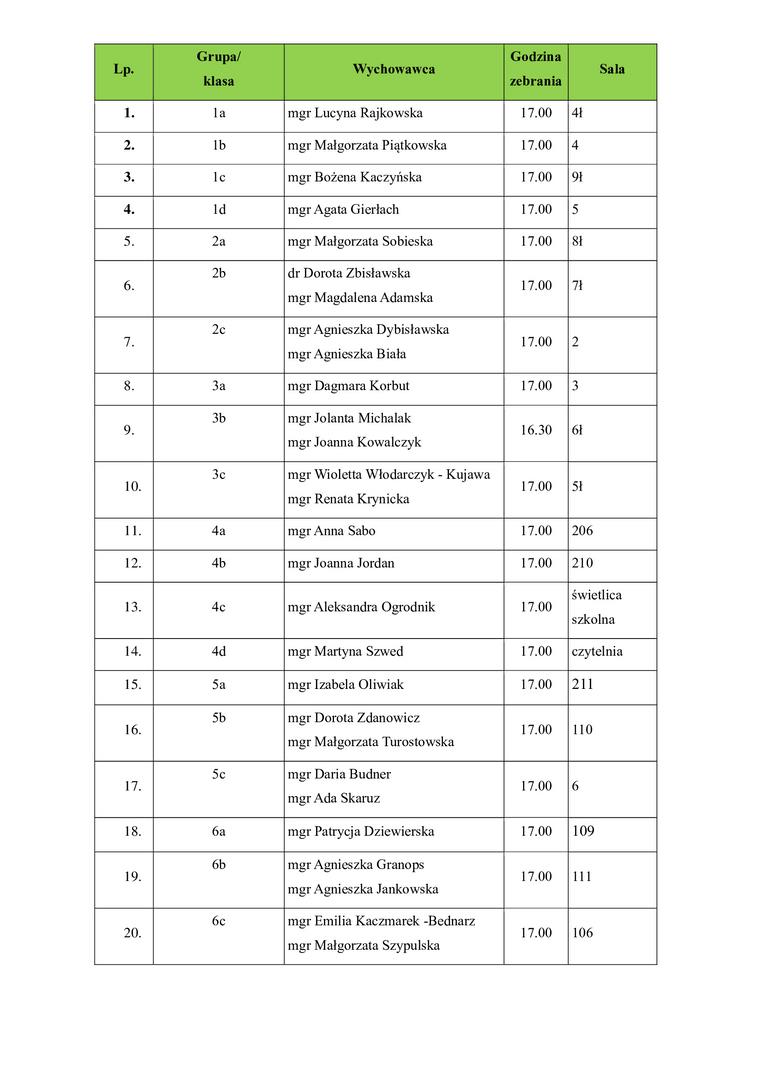 Kalendarz zebrań z rodzicami w roku szkolnym 2025/2026